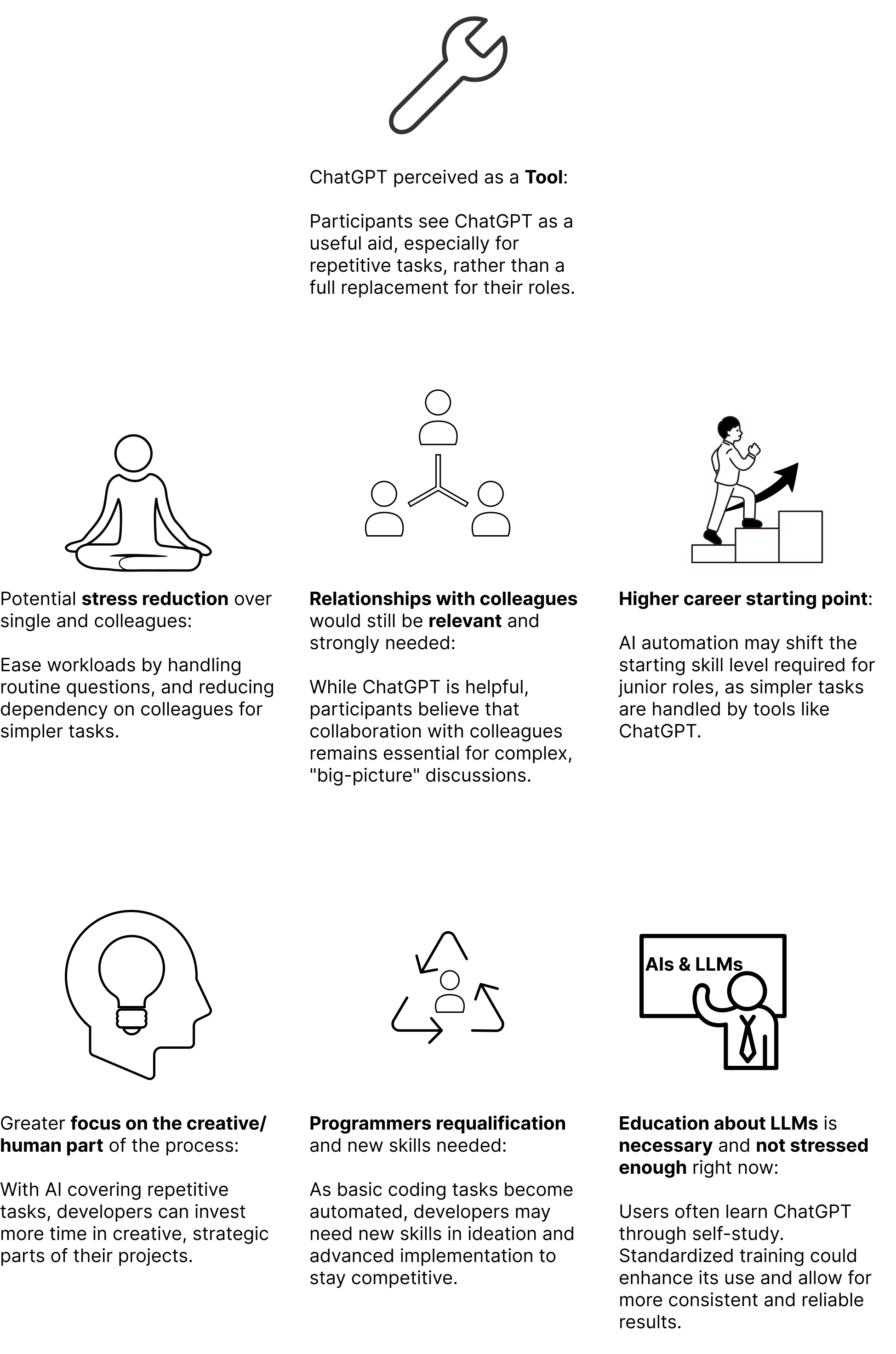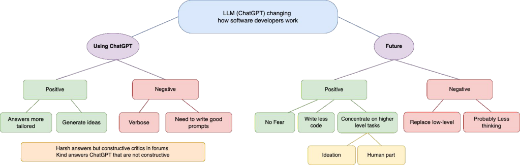 In particular, we were interested in learning more about how LLMs could interfere with the work of developers and computer scientists and how they deal with issues and uncertainties now that these tools are available, potentially with AI taking over their relations with colleagues when it comes to asking for feedback or help.