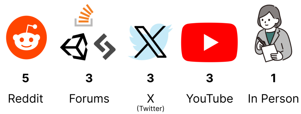 The research began with virtual observation to capture real-world behaviour in an unbiased context, avoiding reliance on participants’ retrospective accounts and interference from our side.