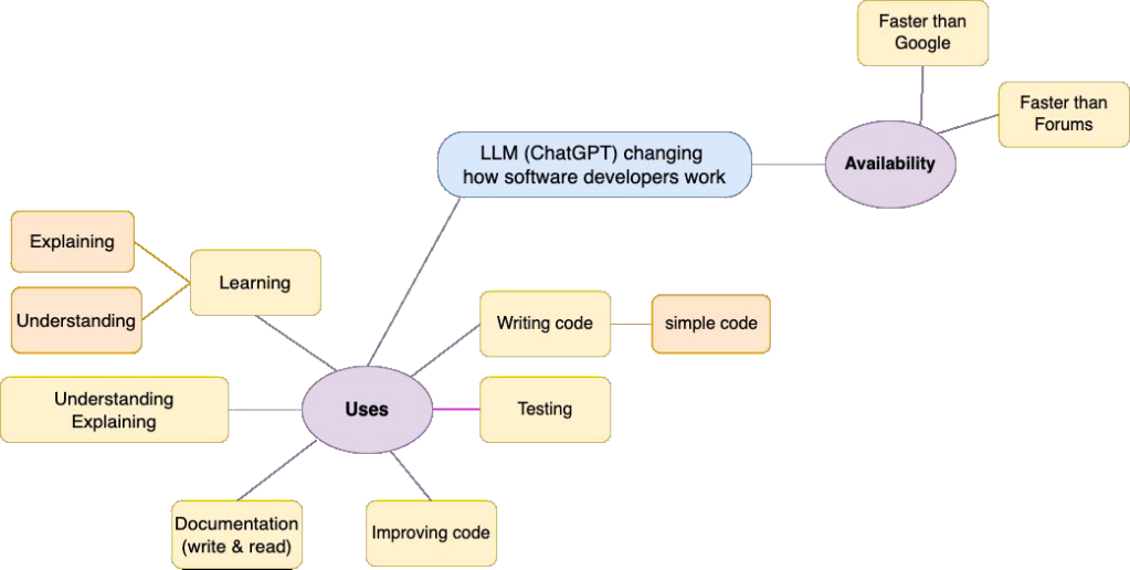- Feeling about availability of ChapGPT vs colleagues (“How do you feel about AI tools being always available in comparison to traditional tools, your colleagues or or other way to obtain information and help?”)