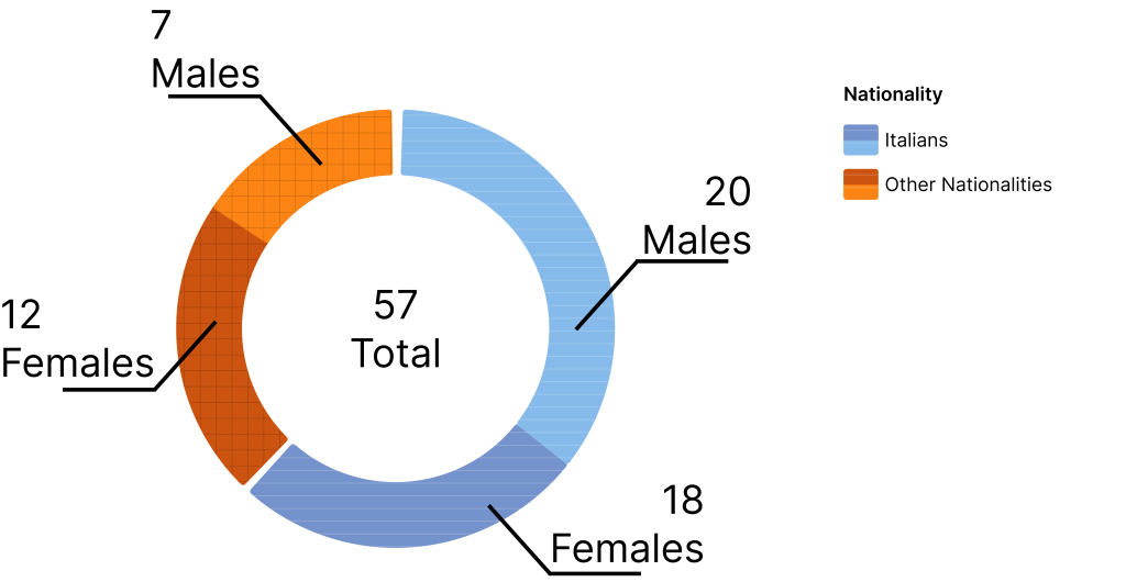 The majority of respondents were between 18 and 30 years old (M = 27,75), with a nearly equal gender distribution (27 male and 30 female participants). There was a slight prevalence of Italian respondents (38 Italians versus 19 non-Italians).