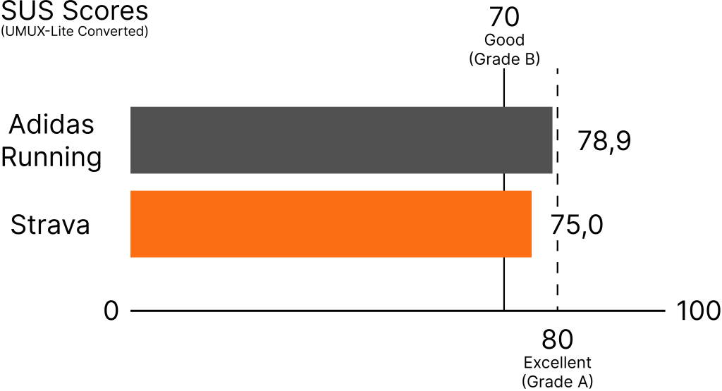 Both apps received positive usability scores based on the UMUX-Lite (then converted to the SUS), with both falling above the acceptability threshold.