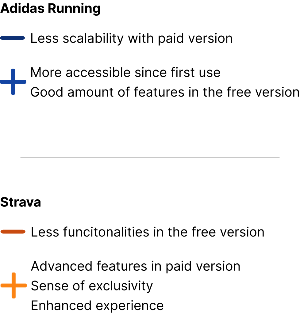However, a notable difference between the two apps emerged. Strava users expressed dissatisfaction with the limited features available in the free version of the app, especially when compared to Adidas Running users, who reported a more favourable range of free features.