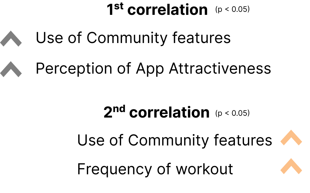 It was interesting to observe how the community aspect significantly influences our users’ perception of Attractiveness in Adidas Running compared to Strava, meaning that users who utilise the social aspects of Adidas Running perceive it as more attractive than those who do not. The same correlation was not found among Strava users.